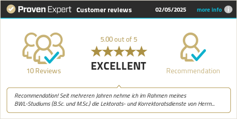 • Studies and science: proofreading and editing of student and scientific texts (term papers, bachelor's theses, master's theses, state examination theses, dissertations) as well as plagiarism checks. Click here for more information and our special prices for students.